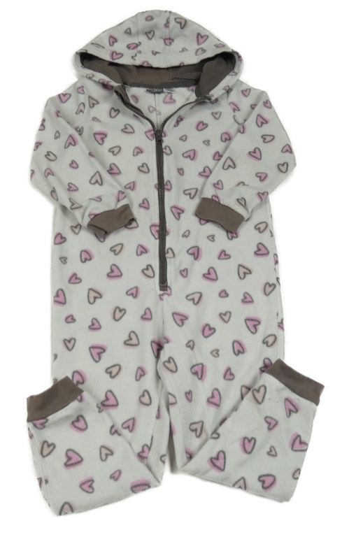 Šedo-růžová fleecová kombinéza se srdíčky a kapucí Lupilu
