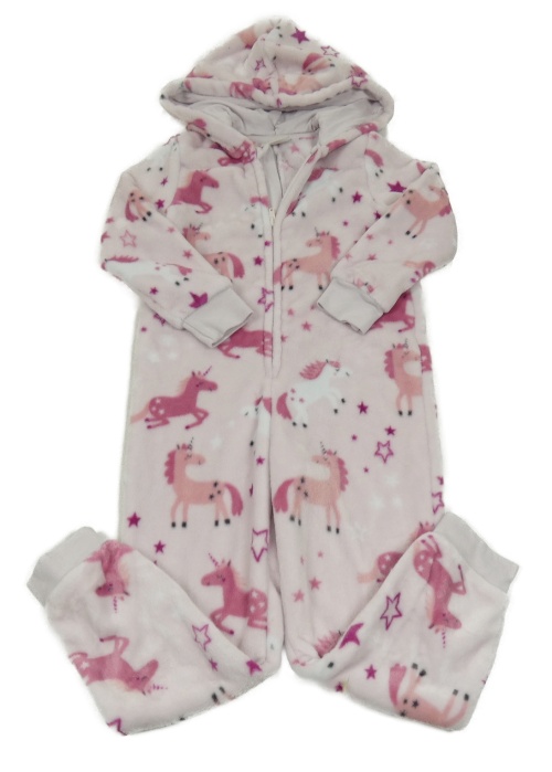 Světlerůžová plyšová kombinéza s jednorožci a kapucí C&A
