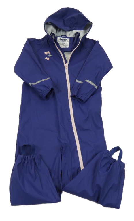 Nové - Tmavomodrá voděodolná kombinéza s motýly a kapucí Lupilu