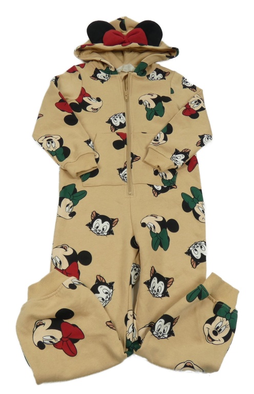 Béžová tepláková kombinéza s Minnie a kočičkou a kapucí s mašlí H&M