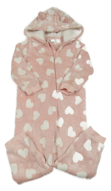 Světlerůžová chlupatá kombinéza se srdíčky a kapucí C&A