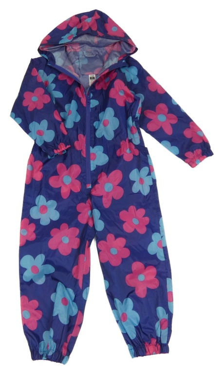 Tmavomodrá květovaná šusťáková nepromokavá kombinéza s kapucí St. Bernard