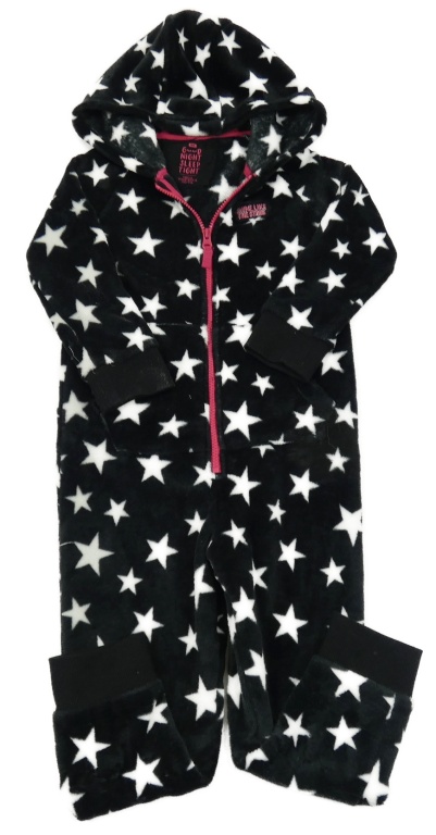Černá chlupatá kombinéza s hvězdami a kapucí
