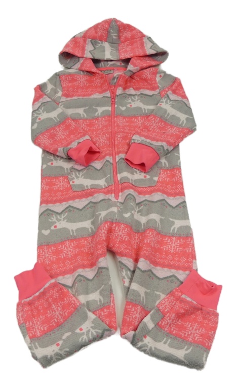 Růžovo-šedá pletená kombinéza se soby a vločkami a kapucí Next