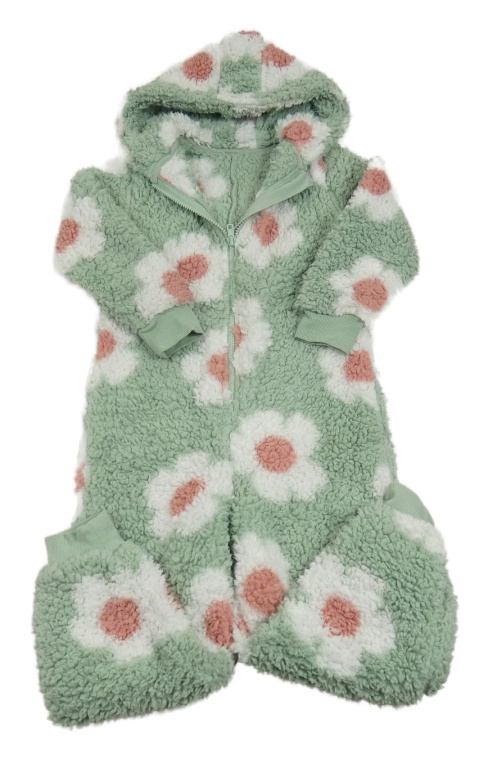 Zeleno-bílá huňatá květovaná kombinéza s kapucí George
