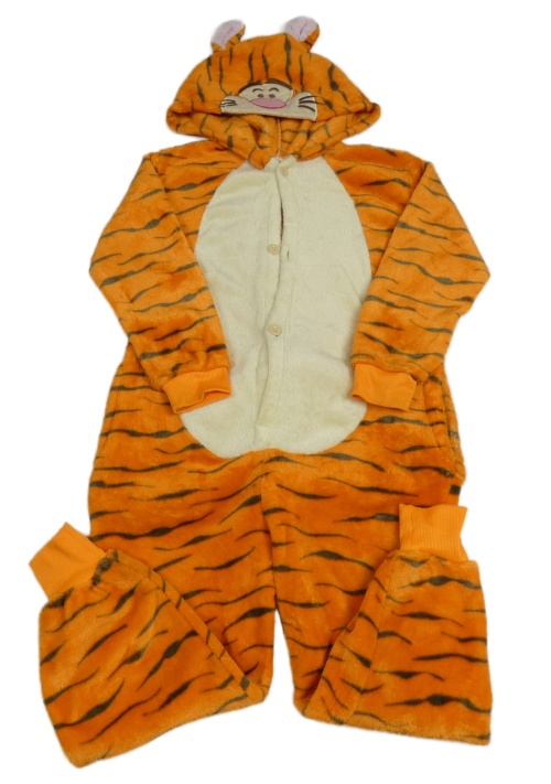 • Kostým - Oranžovo-tmavošedo-smetanová plyšová kombinéza s kapucí - Tygr