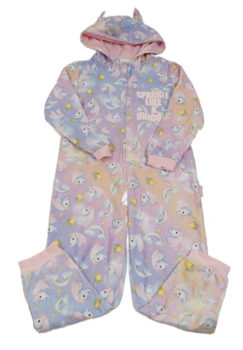 Barevná fleecová kombinéza s jednorožci a kapucí Emoji
