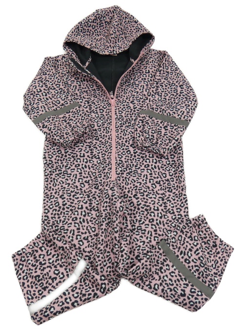 Růžovo-černo-bílá vzorovaná softshellová kombinéza s kapucí Kiki&Koko