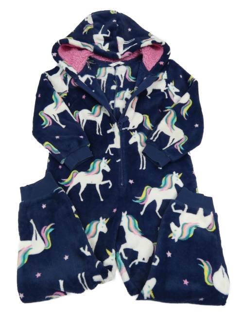 Tmavomodrá chlupatá kombinéza s jednorožci a kapucí M&S