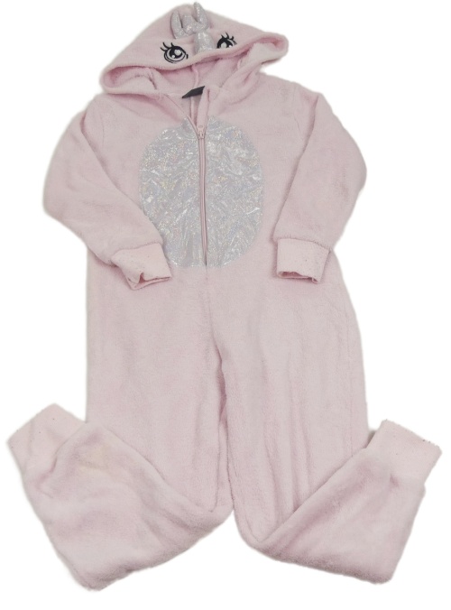 Růžová chlupatá kombinéza s kapucí - jednorožec
