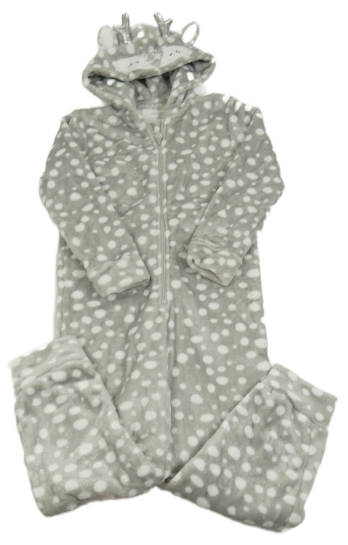 Nové - Šedo-bílá puntíkovaná plyšová kombinéza s kapucí - zvířátko F&F