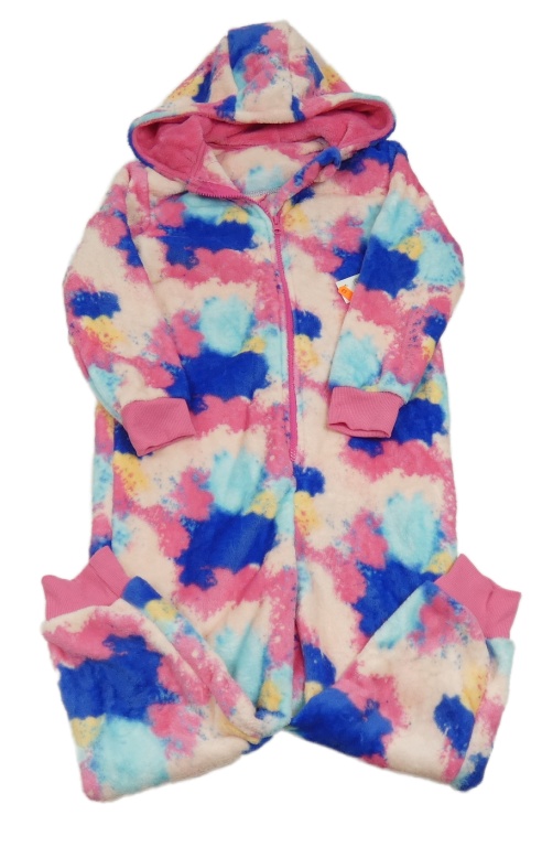 Nové - Růžovo-modro-oranžová vzorovaná chlupatá kombinéza s kapucí Dunnes stores