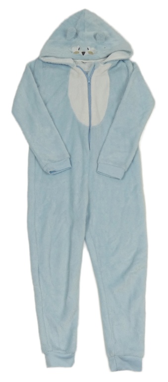 Světlemodro-bílá plyšová kombinéza s kapucí s čumákem