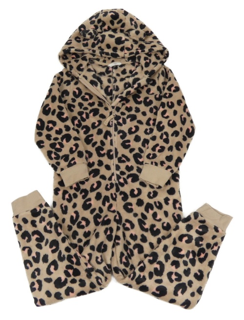 Hnědá chlupatá kombinéza s leopardím vzorem a kapucí M&S