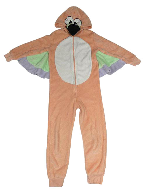 Kostým - Meruňkovo-bílá chlupatá kombinéza s kapucí - plameňák