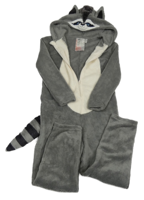 Šedo-bílá plyšová kombinéza s kapucí - mýval H&M