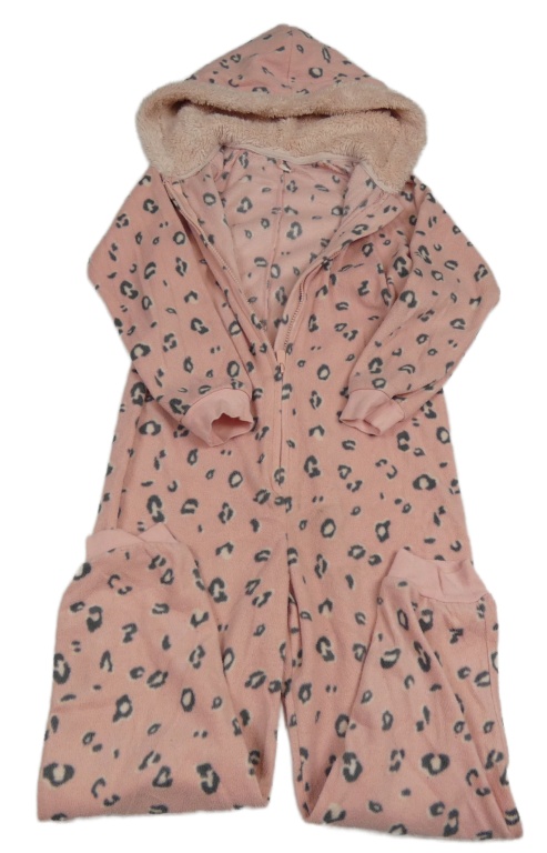 Světlerůžová fleecová kombinéza se vzorem a kapucí George