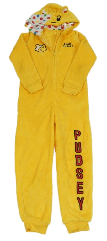 • Žlutá plyšová kombinéza s medvídkem Pudsey a kapucí George