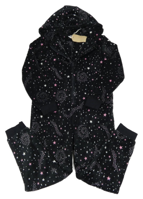 Černá plyšová kombinéza s hvězdičkami a kapucí M&S