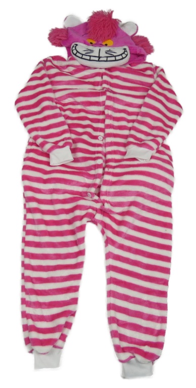 Růžovo-bílá pruhovaná plyšová kombinéza s kapucí - kočka Šklíba