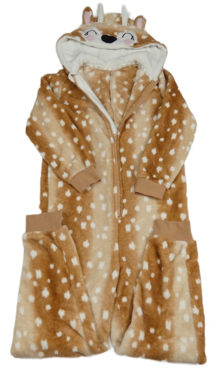 Hnědá puntíkatá chlupatá kombinéza s kapucí - sob Tu