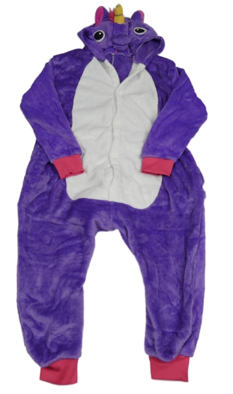 Fialovo-bílá chlupatá kombinéza s kapucí - jednorožec