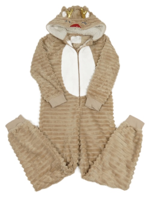 Béžovo-bílá chlupatá kombinéza s kapucí- sob F&F