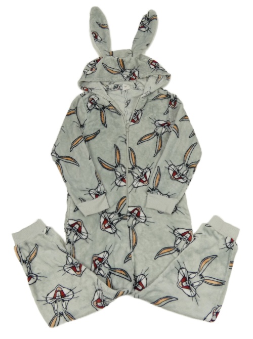 Šedá plyšová kombinéza s Bugs Bunnym a kapucí