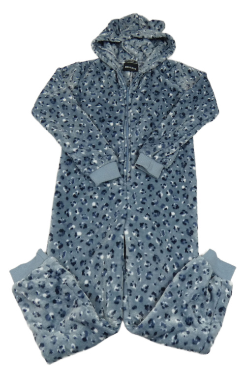 Modrošedo-tmavomodro-bílá plyšová kombinéza s kapucí s oušky NIELSSON