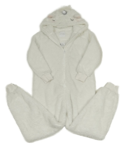 Bílá třpytivá chlupatá kombinéza s kapucí - jednorožec Next