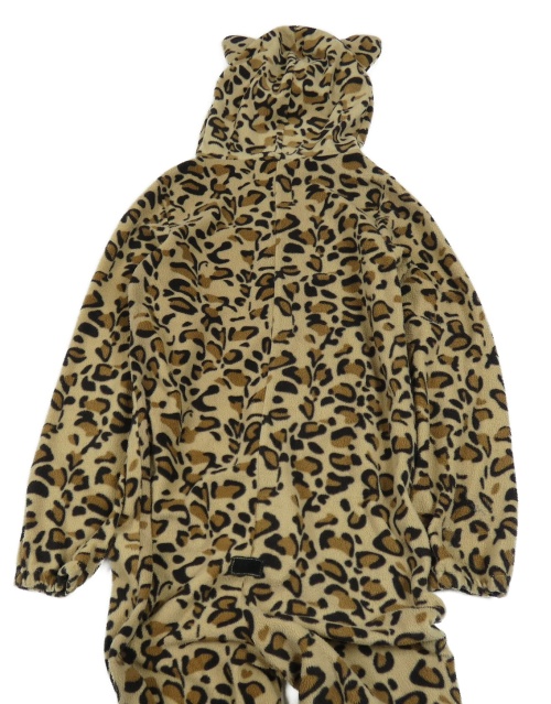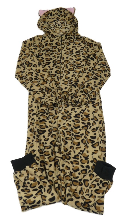 Hnědá fleecová kombinéza s leopardím vzorem a kapucí s oušky