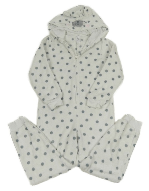 Bílo-šedná puntíkatá plyšová kombinéza s kapucí - medvídek C&A