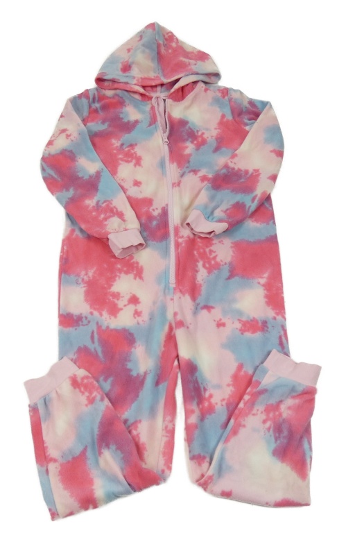 Růžovo-tmavorůžovo-světlemodrá batikovaná fleecová kombinéza s kapucí Pepperts