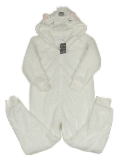 Nové - bílá plyšová kombinéza s kapucí - jednorožec Next