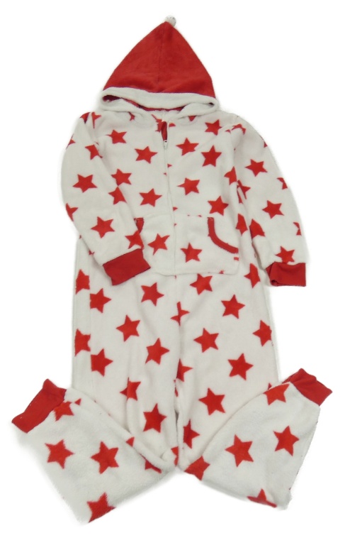 • Bílo-červená chlupatá kombinéza s hvězdami a kapucí Y.F.K.