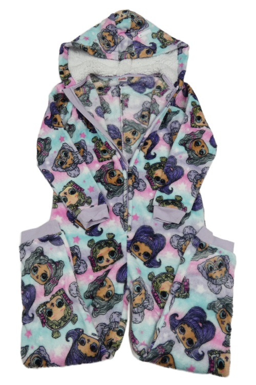 Světlemodro-růžovo-lila chlupatá kombinéza s L.O.L. Surprise a kapucí George