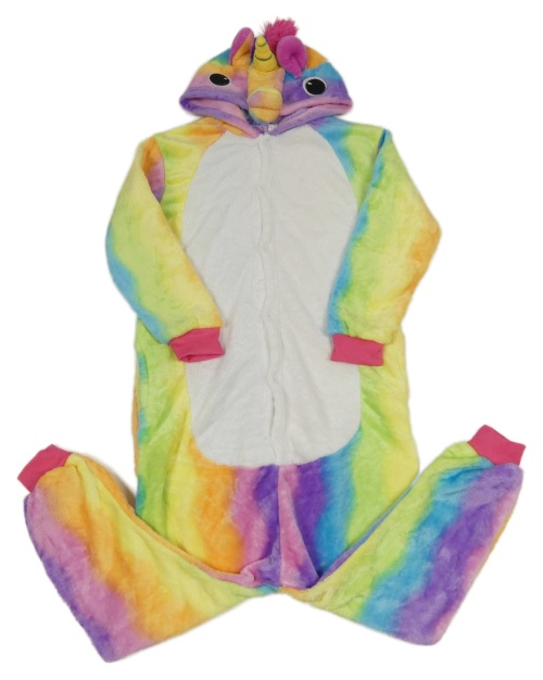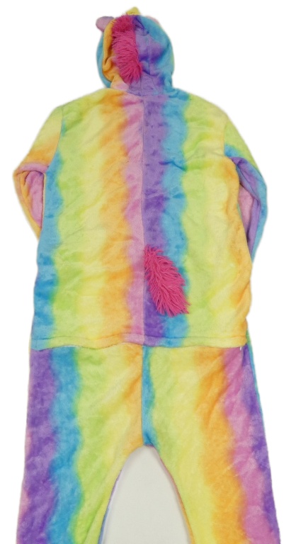 Bílo-barevná chlupatá chlupatá kombinéza s kapucí - jednorožec