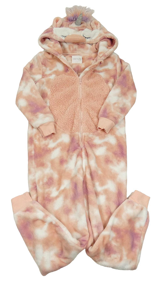 Růžovo-bílá batikovaná chlupatá kombinéza s kapucí - jednorožec Next