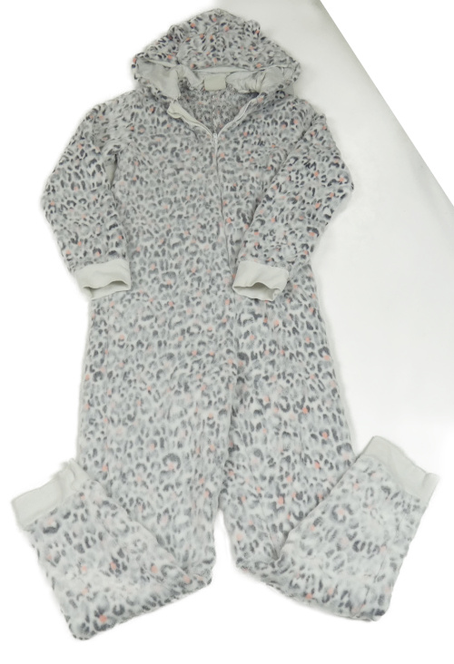 Bílo-šedo-růžová vzorovaná chlupatá kombinéza s kapucí C&A