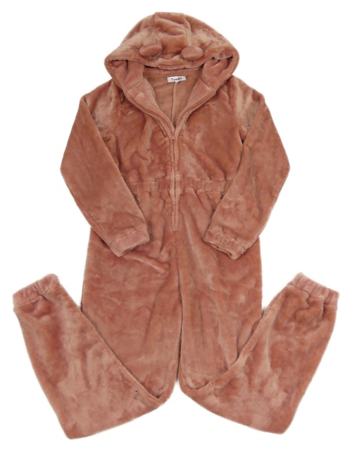 Starorůžová plyšová kombinéza s kapucí