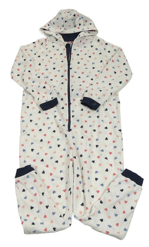 Bílo-tmavomodrá fleecová kombinéza se srdíčky a kapucí a oušky Pepperts!