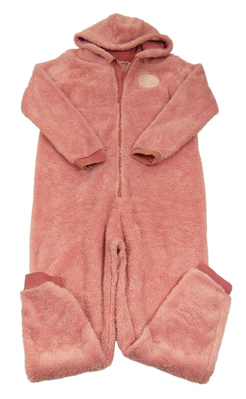 Starorůžová chlupatá kombinéza s nášivkou a kapucí Pepperts