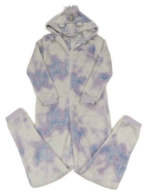 Fialovo-modro-bílá batikovaná plyšová kombinéza s kapucí - jednorožec Vertbaudet