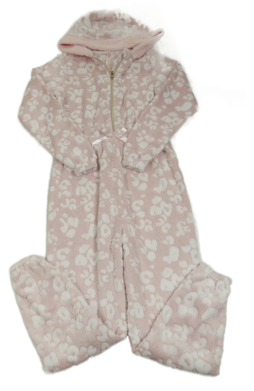 Světlerůžovo-bílá vzorovaná plyšová kombinéza s kapucí Matalan