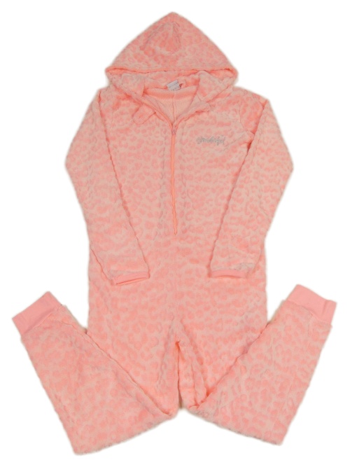Neonově korálová vzorovaná plyšová kombinéza s kapucí Y.F.K.
