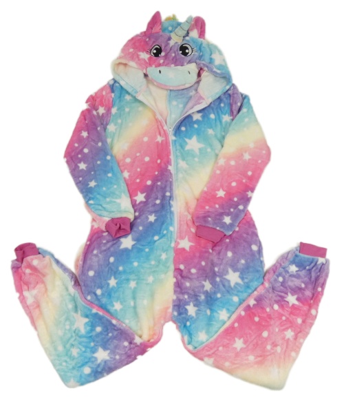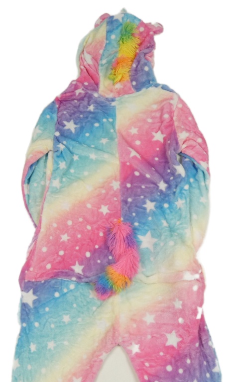 Barevná plyšová kombinéza s hvězdičkami a kapucí - jednorožec