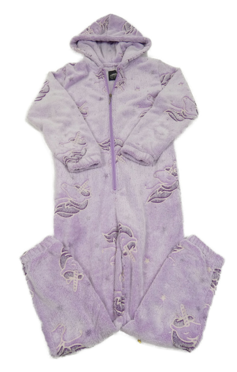 Levandulová plyšová kombinéza s jednorožci a kapucí CITY COMFOR