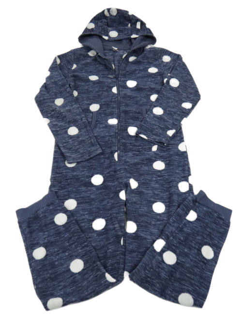 Tmavomodrá melírovaná puntíkatá fleecová kombinéza s kapucí YIGGA