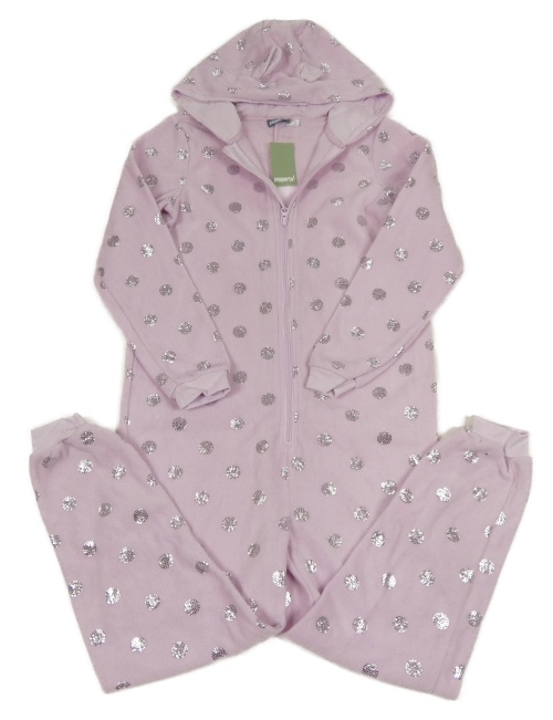 Nové - Lila puntíkatá fleecová kombinéza s kapucí Pepperts