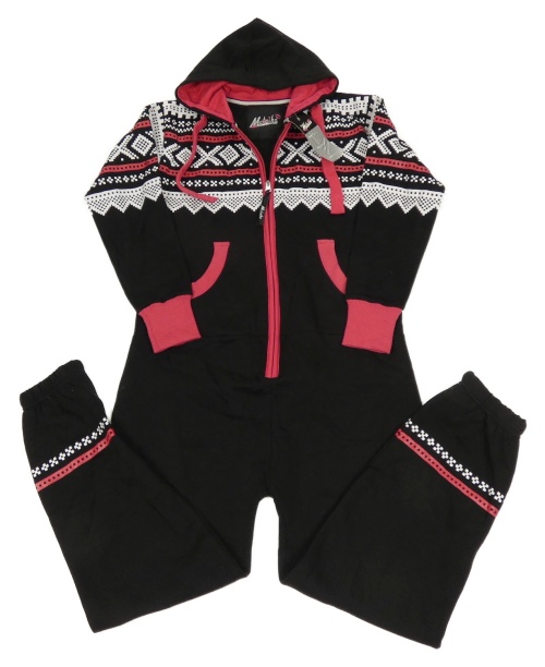 Nové - Černo-bílo-růžová tepláková kombinéza se vzorem a kapucí